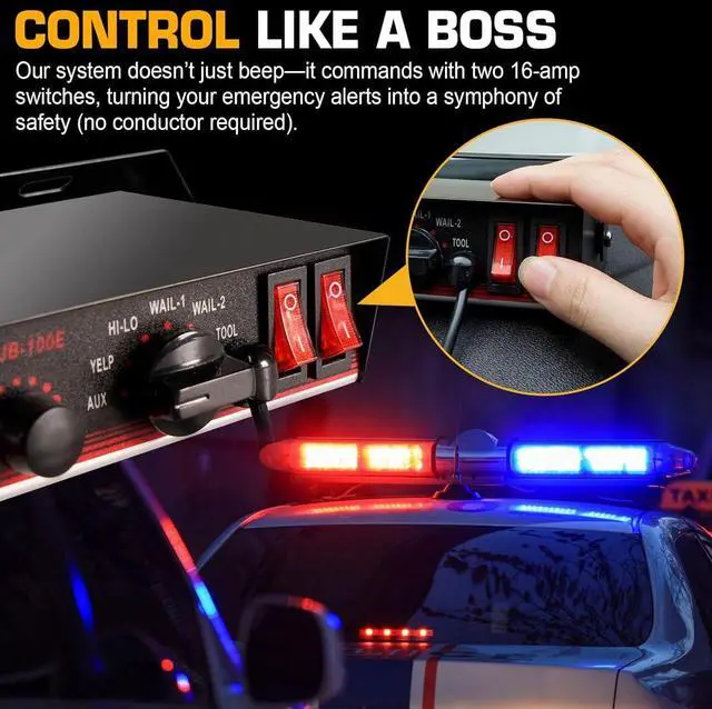 Additional Auxiliary Switches: The warning system offers two 16A switches which you can expanded functionality in vehicle pa system setups, such as Strobe Lights
