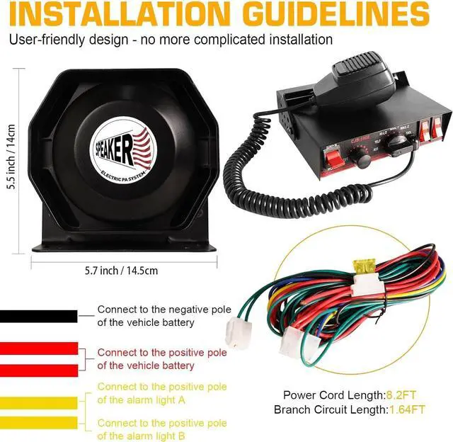 High-Volume Audio Performance: The car pa system delivers 200W power output with 118-130dB siren speakers for clear, you get quality audio output which is long-range sound projection