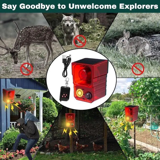 Widely Applicable for Most Setting: the dog barking alarm ensures reliable animal defense at gardens, orchards, barns, backyards, homes, farms, yards, etc., can effectively deter wide ranges of animals, such as stray cats, raccoons, skunks, deer, foxes, birds, deer, wolves, rabbits and other animals; Nice solar alarm motion detector