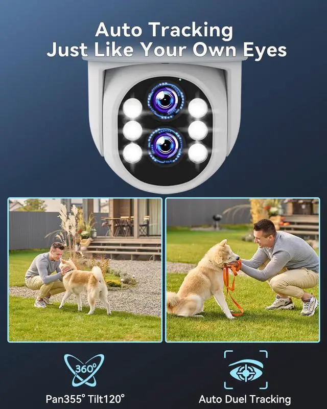 PTZ & Dual Lens:This wireless camera features a dual lens design, allowing you to capture more detailed pictures simultaneously. 10x zoom feature, you can zoom in on specific areas of interest with exceptional clarity. Equipped with intelligent auto tracking functionality, this system automatically detects and tracks any moving object within its field of view. the camera will follow their movements and keep them within sight at all times