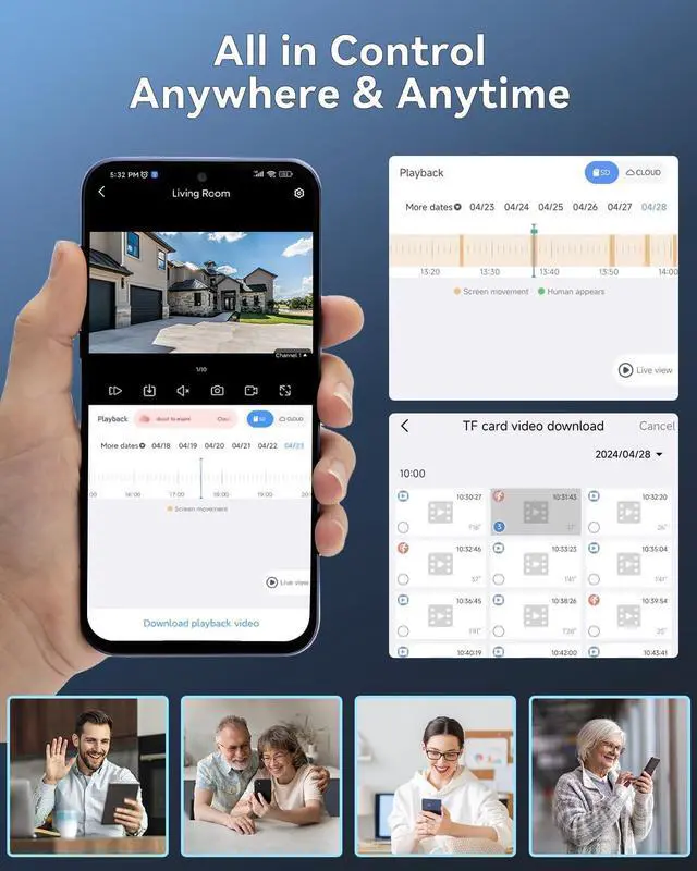No Month fee & 24/7 Recording: Cameras come with 1TB hard drive and you no need to subscribe month fee Never miss a moment with the 24/7 Recording capability of this system. It guarantees continuous recording, ensuring that every crucial second is captured and stored securely. Enjoy peace of mind knowing that your property is under constant surveillance