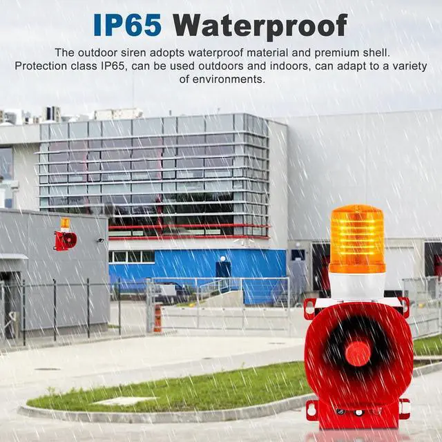 WaterproofThe outdoor siren adopts waterproof material and premium sheel. Protection class IP65, can be used outdoors and indoors, can adapt to a variety of environments.