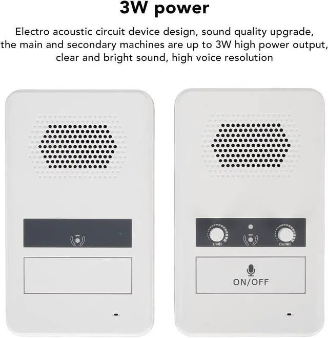 3W Power: Dual way counter intercom is designed with electro acoustic circuit devices, upgraded sound quality and high power output of 3w for both main and sub units, with clear and bright sound and high voice resolution.