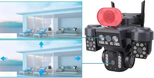 Super Clear Picture: With 12MP composite high definition quality, 3pcs 4MP lenses create clear images, supporting 1080P HD output and 4x digital zoom to enlarge details like faces and license plates, enhancing security accuracy.