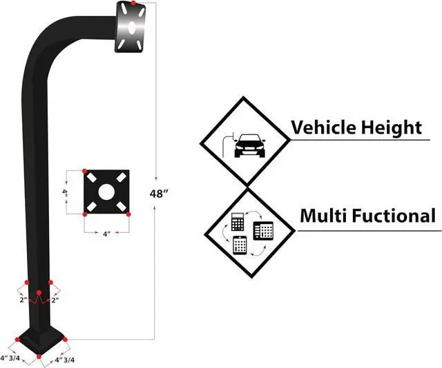 2" X 2" Heavy wall Aluminum 48" in Height Pre-drilled for quick and easy installation of Most Keypads Corrosion-resistant, powder-coated Aluminum construction. Welded bottom plate, plate cover so the anchors are not exposed