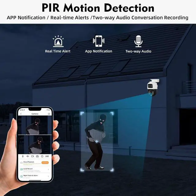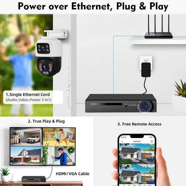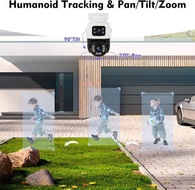 360° Surveillance & 6MP Dual Control Security SystemNVR PoE security camera system dual HD lens record and capture at the same time to ensure that every corner is clearly monitored, reducing blind spots in the monitored area. The PTZ camera is equipped with a PIR motion sensor that instantly tracks the target when motion is detected and pushes alerts to the phone via the icsee/xmeye app