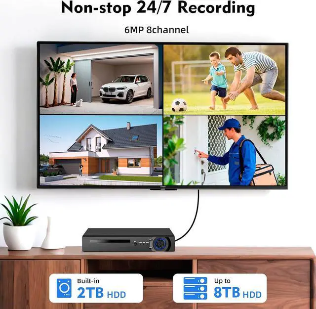 What You Get:1 Network Video Recorder, 2TB HDD (pre installed on NVR), 2 x 6MP PoE camera, 2 x 18 meters integrated network cable,convenient for customers to install in any location. If you encounter any problems in the operation process, please feel free to contact us, our professional technical team will respond within 24 hours, the whole escort your experience