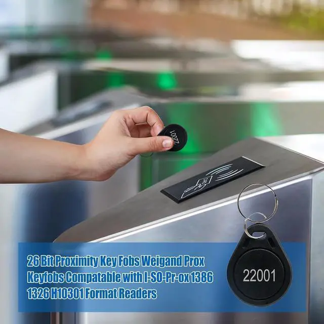 COMMON FORMAT: 100pcs Prox 26 Bit Keyfobs access control Proximity Key Fobs formatted with the 26-bit H10301 standard format used on most access control security systems.