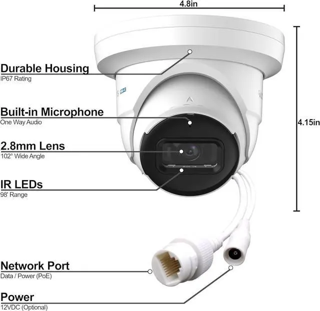 2.8mm lens, IR range of up to 98 feet