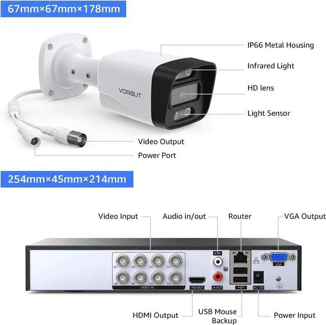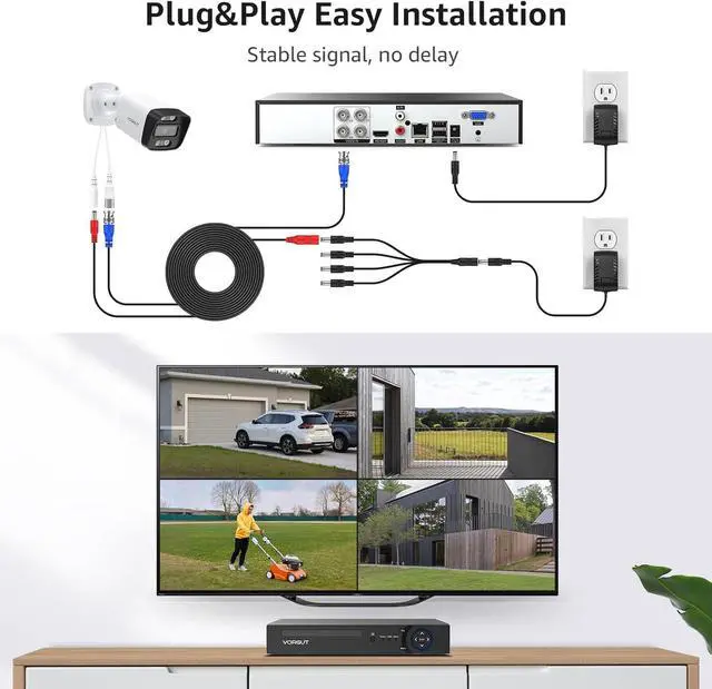 Plug and Play: Connect cameras to DVR with BNC cables and power them up. Then link the DVR to TV or monitor via HDMI or VGA for instant, reliable local viewing. Unlike wireless systems, this wired cctv system provides stable performance without being affected by signal or network issues