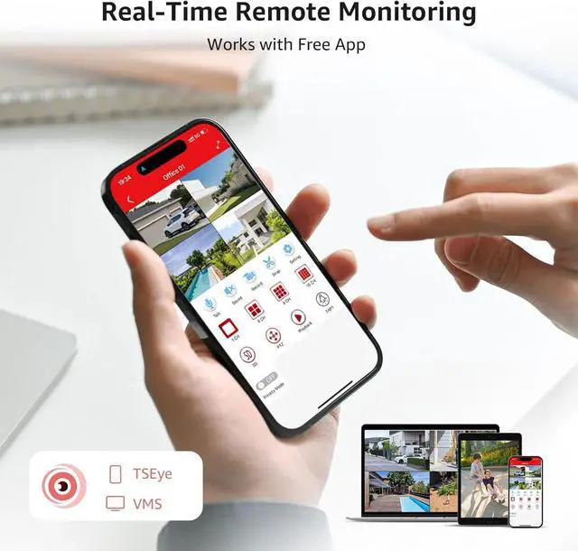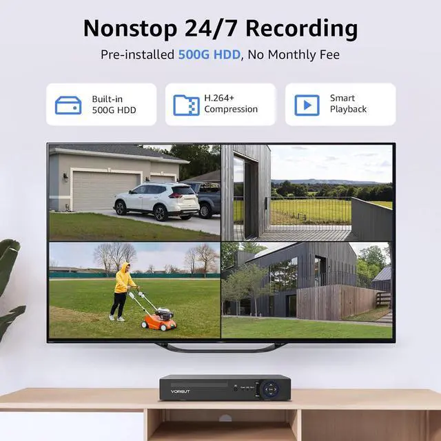 Pre-Installed 500G HDD: Enjoy local storage on the hard drive, providing ample space for your video footage without any monthly fees. This ensures comprehensive and secure video storage with no hidden costs. You can set up 24/7 Recording and view playback video anytime