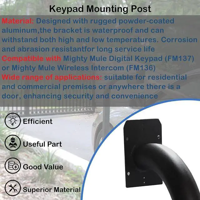 Compatible with Mighty Mule Digital Keypad (FM137) or Mighty Mule Wireless Intercom (FM136)