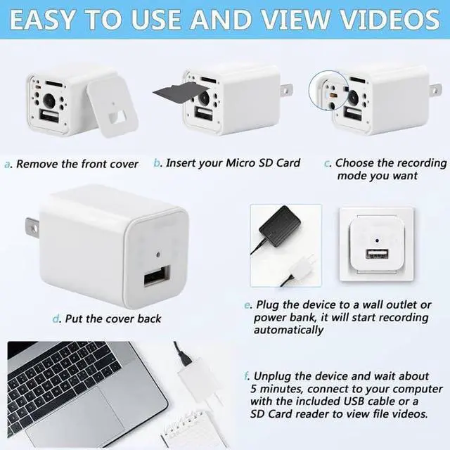 Discreet Design & Dual Function This hidden camera charger looks and functions like a regular USB charger, making it undetectable in any room. Charge your devices while monitoring your home, office, or nursery in full 1080P HD