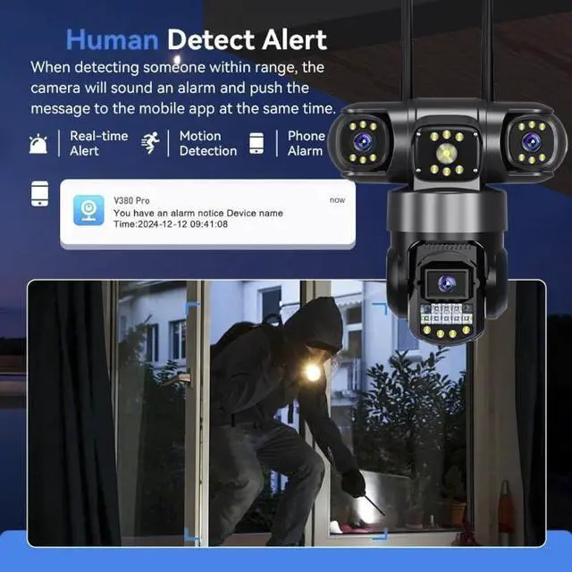AI-Powered Human Detection with Auto Tracking Advanced algorithms filter out false alerts from animals and vehicles, sending instant phone notifications only for human intruders. The camera automatically tracks movement for complete coverage of suspicious activity.