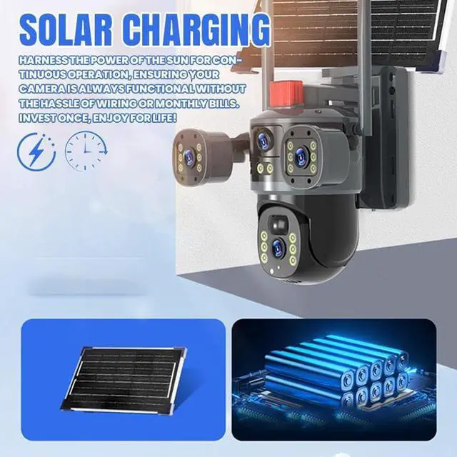 Continuous Solar Working: Harnessing renewable solar energy for autonomous power this security system stops wiring hassles and ensures uninterrupted surveillance with its high-efficiency solar panel maintaining constant functionality in remote outdoor locations