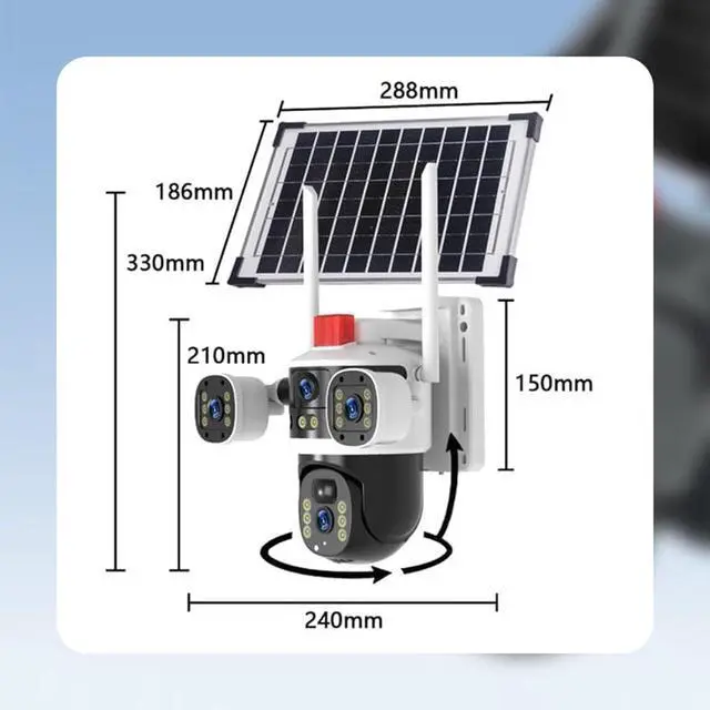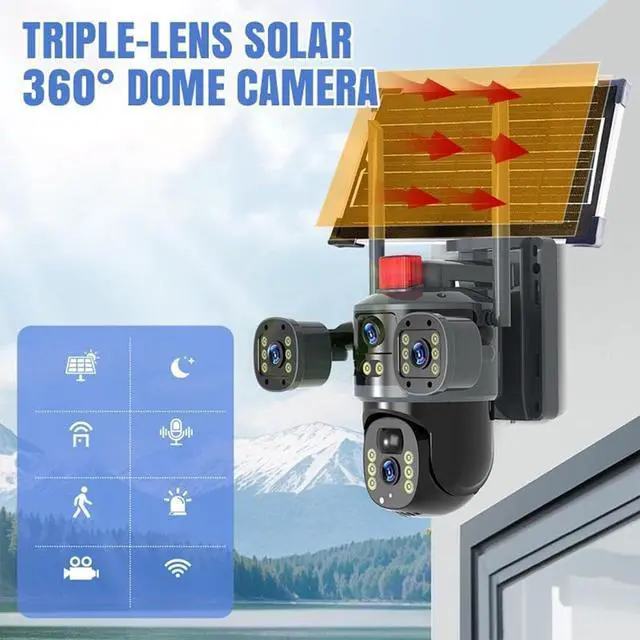 Triple-Sensor Coverage Skill: Three strategically positioned lenses capture overlapping 360-degree views simultaneously erasing blind spots and delivering comprehensive panoramic monitoring for large areas such as farm perimeters fishponds and expansive properties