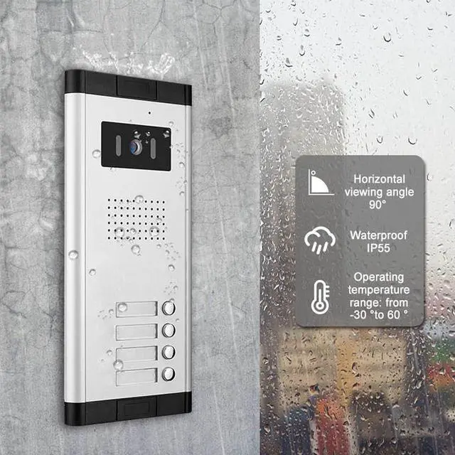 IP55 Waterproof Rating: This aluminum alloy doorbell is rainproof and can easily withstand harsh weather conditions like rain and snow. The installation kit includes a 5-meter cable for easy connection to your monitor. Simply plug it in and it's ready to use.