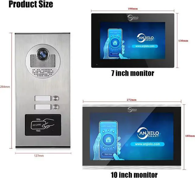 7 Inch Touch Monitor And 1080P Doorbell:7 inch touch screen monitor, touch operation, hands-free, support Wifi to connect to the Internet. Outdoor doorbell with waterproof cover, built-in infrared sensor and 1080P camera,160o wide angle, night vision, waterproof, dustproof and vandal resistant. You can connect all 12V electronic locks.