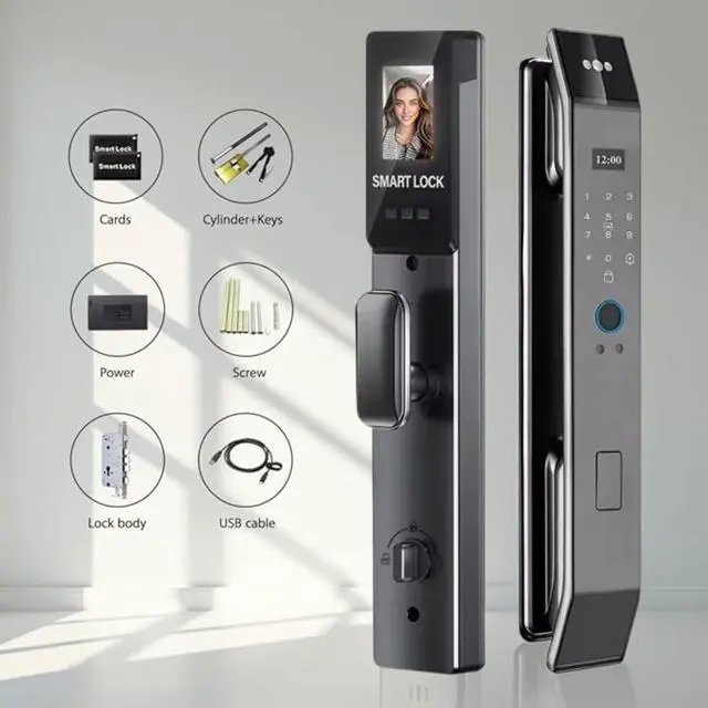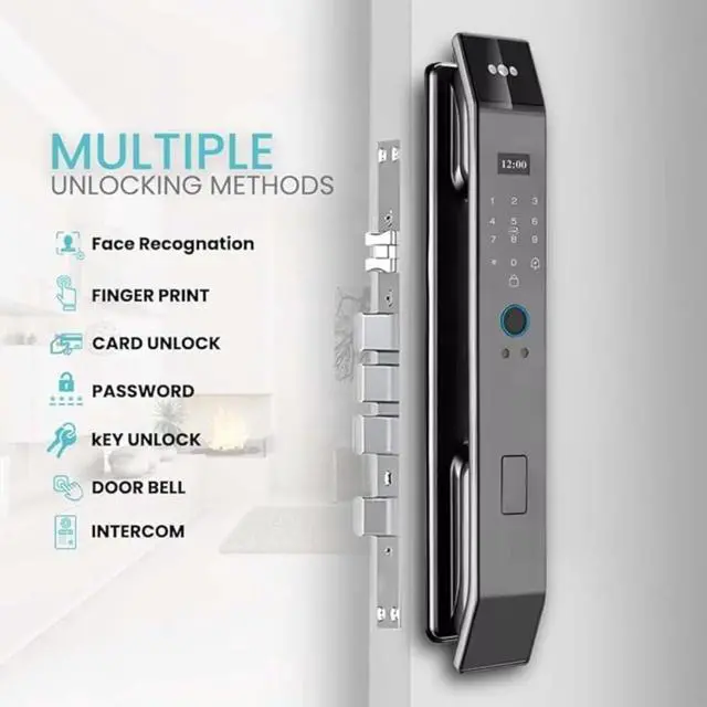 Advanced 3D Face Recognition: Unlock instantly with touch-free 3D facial scanning. Accurate and secure even in low light for effortless, hands-free entry.