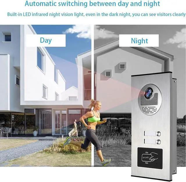 IP65 Dustproof and WaterproofThe doorbell made of aluminum alloy material has rain outside the doorbell. It can easily resist rain, snow and bad weather. The installation package is equipped with a 5m cable for easy connection between doorbell and monitor. It can be used by connecting the power supply.