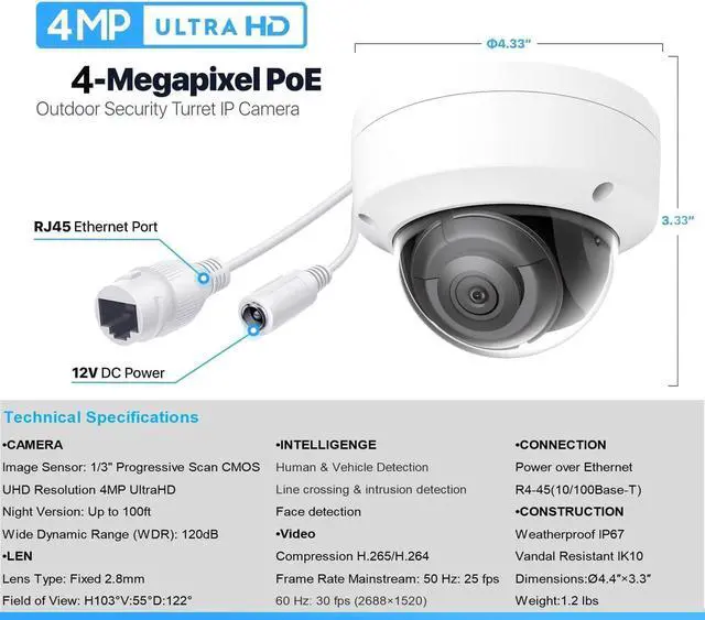CRYSTAL-CLEAR 4MP IMAGERY: Capture every detail with stunning high-definition 4-megapixel resolution, providing superior image clarity and sharper videos day or night, ensuring you never miss a critical moment.