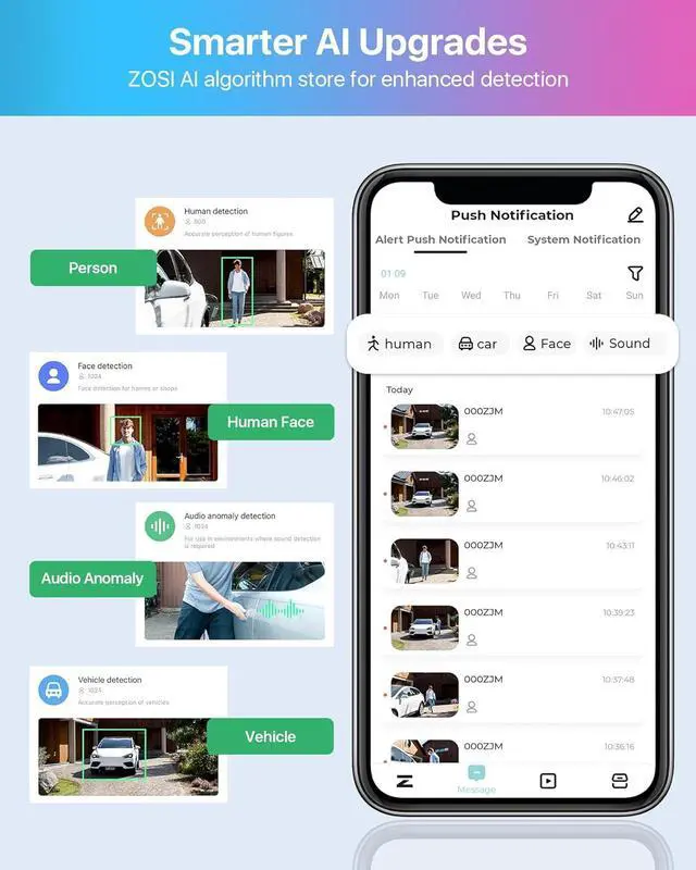 Human detection with smart alerts When there are motion events, this camera will alert to any potential danger via a smart light and sound alarm system. And you'll always receive real-time app pushes and email alerts, providing a higher level of security.