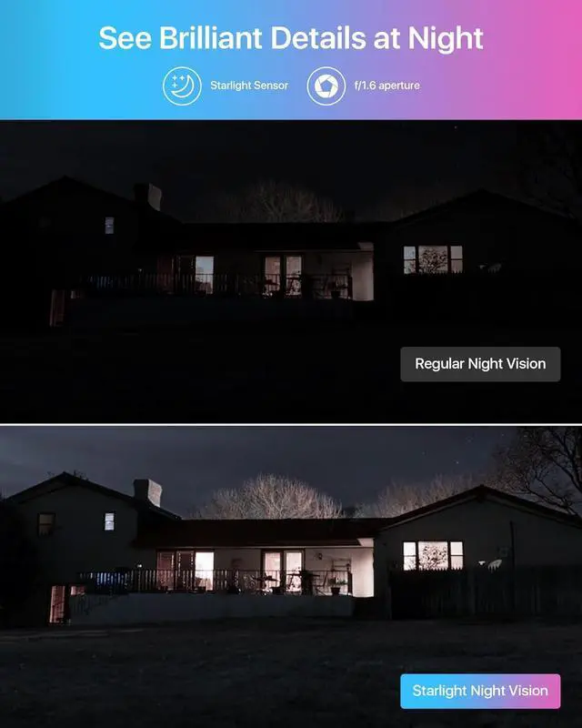 4K Ultra High Definition and Night VisionThe resolution of this PoE IP camera is 1.6X clearer than 5MP and 4X clearer than 1080P. Record everything with sharper details. Equipped with 4pcs IR LEDs and 2pcs spotlights, support 100ft starlight night vision.