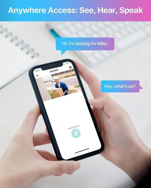 Two-Way AudioWith a two-way audio function, not only can hear but also allows you to have real-time conversations like talking on a phone with your family members or warning intruders even if you are far away from home