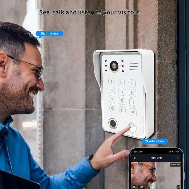 Wiring Instructions: This smart access control system uses a standard 4-wire connection scheme, with stable communication between the monitoring host and doorbell achieved via a 4-core cable. We provide a 4-core cable as standard for each doorbell to meet basic installation requirements. Each monitoring host is also equipped with a 1.2-metre external power cable, and users can flexibly extend the wiring distance using 4-core wires. The main monitor supports Wi-Fi connectivity, allowing you to view visitor activity anytime, anywhere via your mobile phone and manage access remotely.
