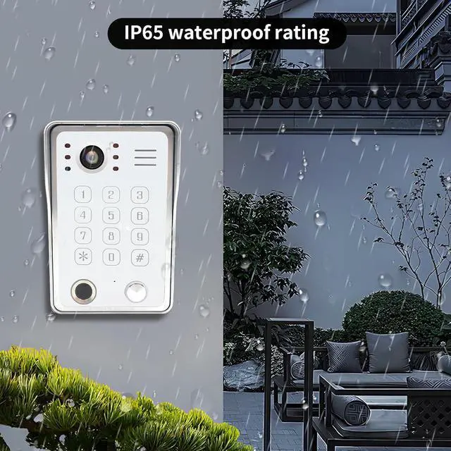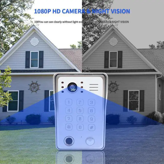 10-inch Touchscreen & 1080P Doorbell: The system core includes a 10-inch high-definition touchscreen monitoring host and a 1080P full-featured doorbell. The monitoring host features a sensitive touchscreen, supports hands-free calling, and can connect to the internet via Wi-Fi. The outdoor doorbell features a durable waterproof and dustproof housing, built-in infrared sensors, and a high-definition wide-angle camera, offering a 148° ultra-wide viewing angle and clear night vision functionality. It also includes anti-tamper design and is compatible with all 12V standard electronic door locks.