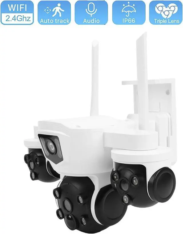 Triple Lens: This security camera equipped with three independent 4MP lenses that deliver combined 12MP resolution with 8K ultra clear image quality. The synchronized triple display system provides comprehensive real time viewing coverage across multiple angles simultaneously.