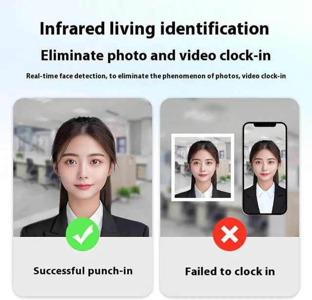 [Anti-spoofing Technology] : The face recognition attendance system supports infrared liveness identification, preventing fraudulent practices such as photo and video proxy check-ins.
