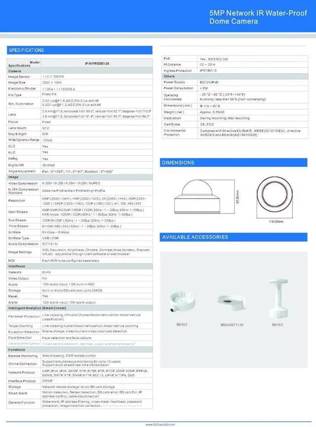 Built-in micro SD card slot, up to 256GB, DC12V/PoE power supply, IP67 & IK10