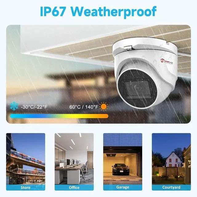 100ft IR Night Vision & 2.8mm Lens: This Anpviz analog security camera's high-quality IR LEDs activate automatically in low-light conditions and features a 2.8mm fixed lens with a wide 110 degree field of view (FOV) to cover a large area. So you can capture a clear view at dawn, at night, in the rain, or in any low light situation.