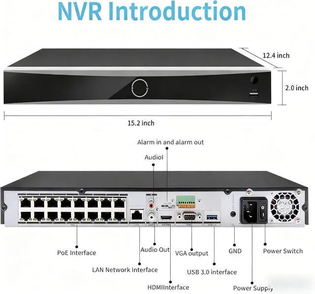 16-Channel PoE NVR with Plug & Play Setup: Supports up to 16 IP cameras with integrated Power-over-Ethernet interfaces for easy installation and connectivity.