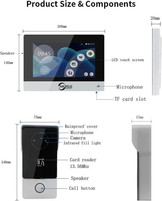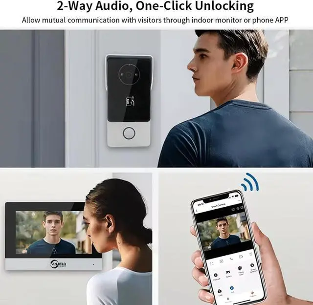 3 IN 1 UNLOCKING:ANJIELO SMART offers convenient remote access control with added visual verification to ensure visitor identity security. It supports unlocking via IC card, remote monitor control, and the Tuya APP. It is suitable for various settings, including apartments, villas, hotels, and offices.