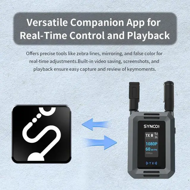 All-in-One Assistive App:SYNCO Link App supports real-time monitoring, image adjustments, and instant playback, enhancing shooting efficiency and precision.