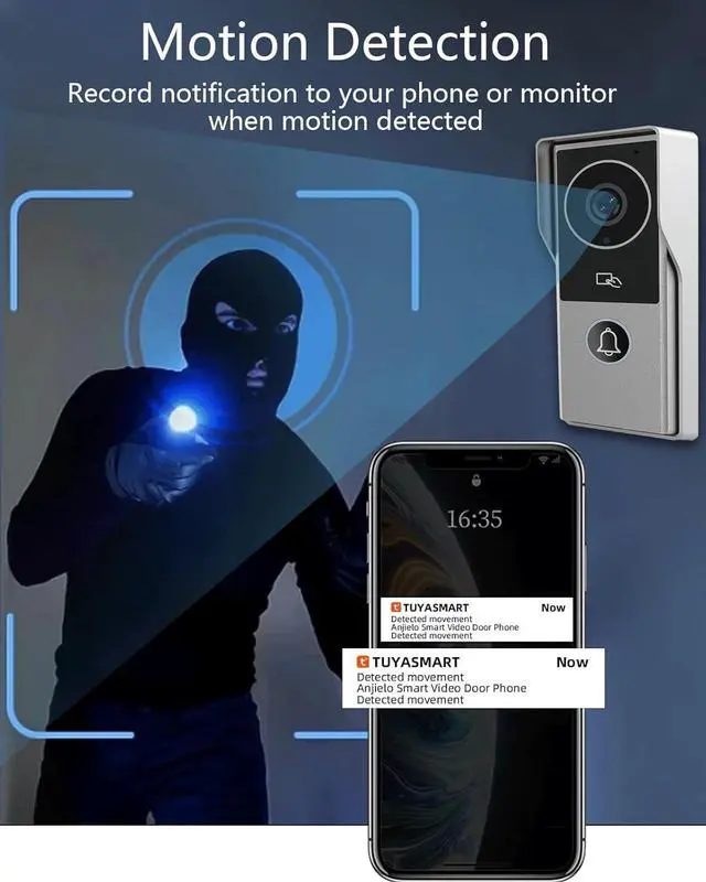 Motion DetectionWhen motion is detected, the camera automatically begins recording, ensuring that every moment is captured for your review. You will receive instant notifications on your smartphone, allowing you to monitor your doorstep in real-time. With the built-in microphone, you can communicate directly with anyone at your door, effectively warning off suspicious individuals without leaving the comfort of your home.