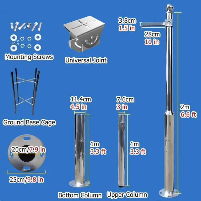 Easy Assemble: The segmented combined surveillance camera pole is assembled from 2-3 sections of poles, which is easy to transport and install, and is equipped with mounting screws and ground cages