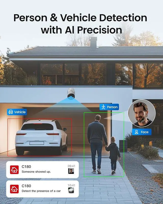 Smart Person/Vehicle Detection & Instant Alerts--Advanced AI accurately distinguishes people & vehicles from other motion, reducing false alerts by 90%. Get real-time notifications via app alerts, emails when threats are detectedensuring you never miss critical events.