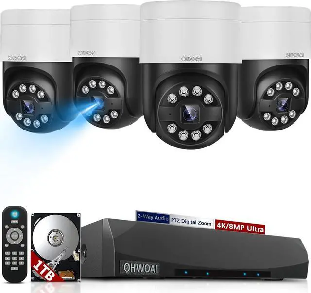 4K HD ResolutionExperience Ultra-HD with 4K/8.0 Megapixel PTZ PoE security cameras. Enjoy 24/7 recording, wired installation, and 8-camera coverage with a hard drive. Upgrade to 4k with waterproof outdoor PoE cameras;no WIFI required.