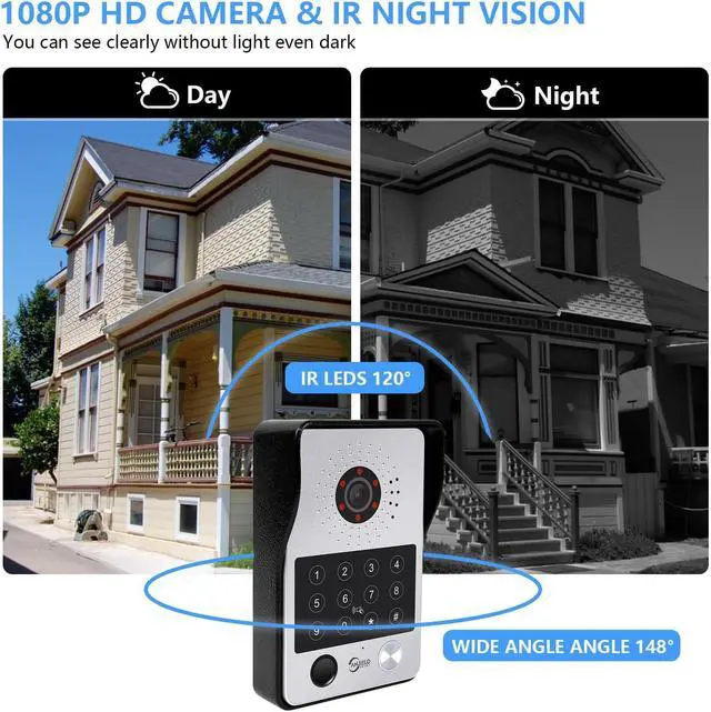 2 UNIT 10 INCH TOUCH MONITOE AND 1080P DOORBELL:10 inch touch screen monitor, touch operation, hands-free, support Wifi to connect to the Internet. Outdoor doorbell with waterproof cover, built-in infrared sensor and 1080P camera,110o wide angle, night vision, waterproof, dustproof and vandal resistant. You can connect all 12V electronic locks.