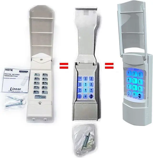 DNT00094 Linear light gray color Wireless MegaCode Keypad, 318MHz, Cool Gray, 1-6 Digit Pin, Backlit Keys, AAA Batteries Also known as NMTK, replaces LPWKP (MDTK). Warranty 1 year. Compatible with Linear garage door opener models: LDCO863B, LDCO841, LDCO850, LDCO852, LCDO801, LDCO800, LDO33, LDO55, LDO50, LSO50 and LCO75 Also compatible with Linear MDRU Plug-in Radio Receiver and MDR Radio Receiver.