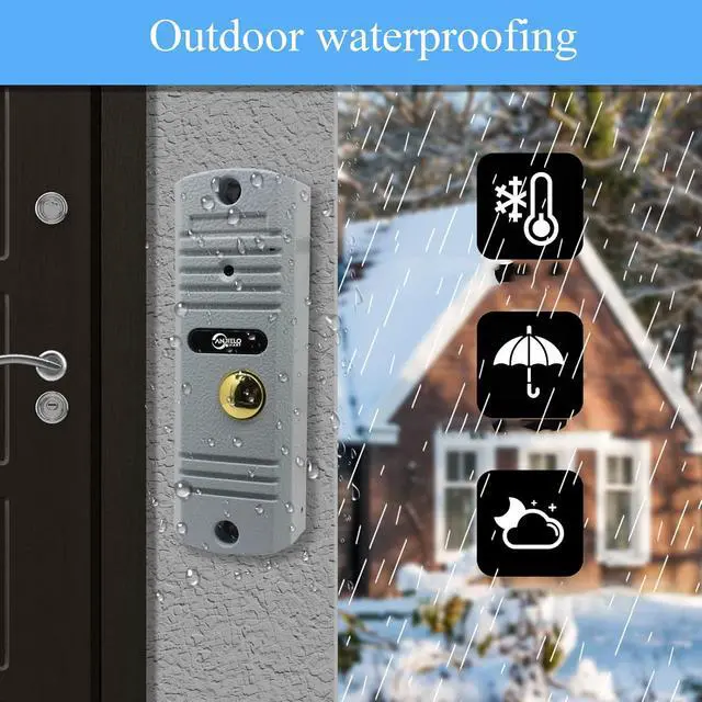 IP65 Dustproof and WaterproofThe doorbell made of aluminum alloy material has rain outside the doorbell. It can easily resist rain, snow and bad weather. The installation package is equipped with a 5m cable for easy connection between doorbell and monitor. It can be used by connecting the power supply.
