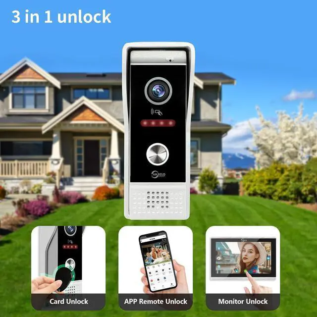 Wired Video Door Chime:Connect the doorbell camera to the monitor with RVV4 cable (up to 300 feet), the monitor supports 2.4G WIFI network, and you can add the monitor to the TUYA APP on your cell phone. when a visitor presses the doorbell, your smartphone will receive the doorbell alarm, and you will be able to see, hear, and talk to the visitor at the door. You can even unlock the door remotely from anywhere with your phone!