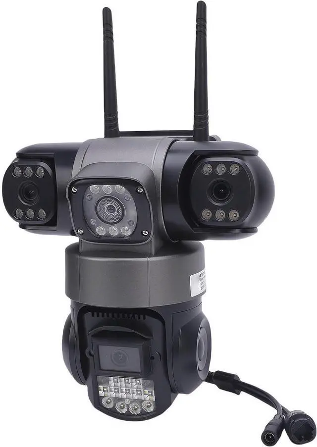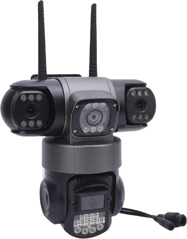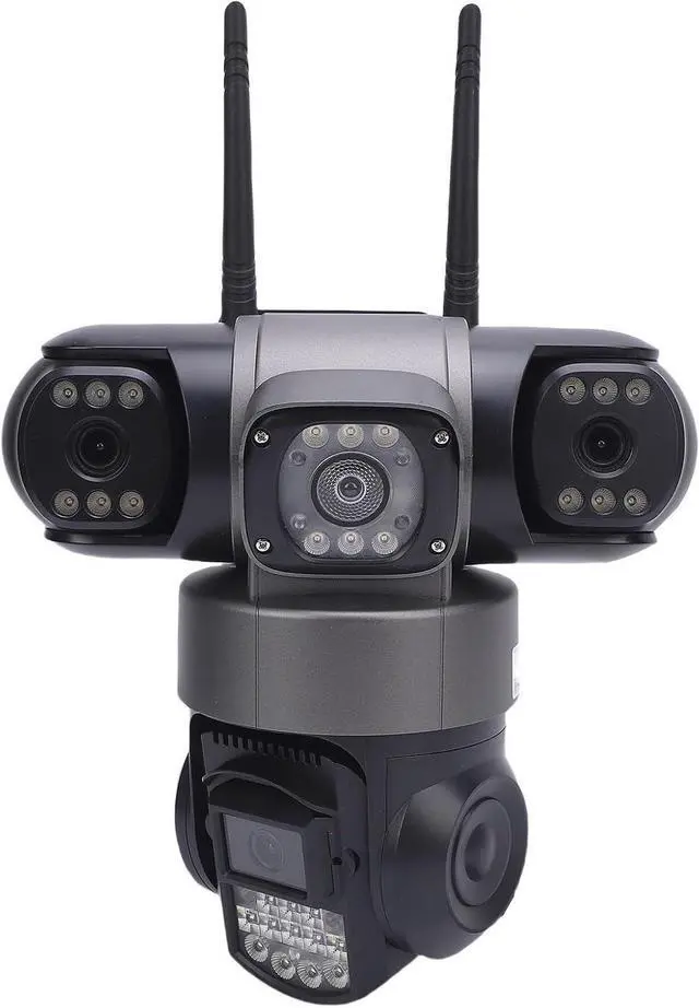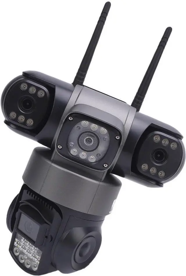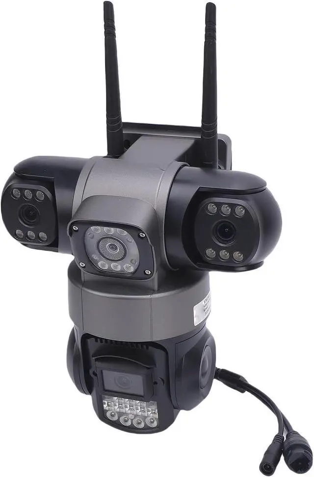 Triple Lens Security Camera: Equipped with 3pcs 2MP HD lenses, supporting simultaneous recording of 3 screens, offering wide coverage suitable for large areas like orchards and farmlands.
