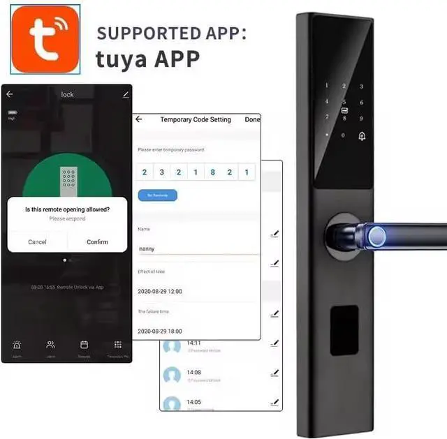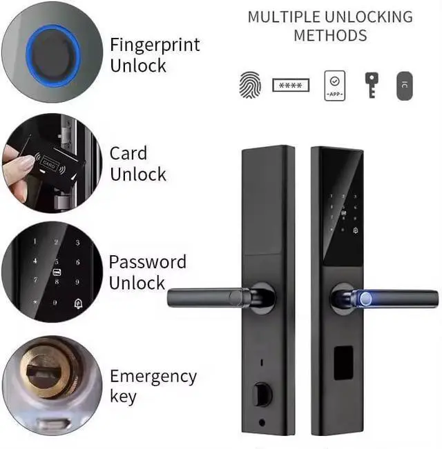 Easy Operation: You can not only unlock the door with your fingerprint, card, key or the code you set, but also can open the door with tuya APP(BLE), very smart and convenient.