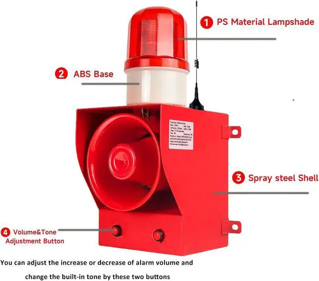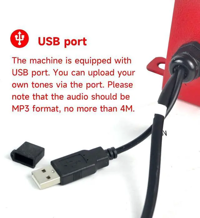 Volume & Tones optionalThe volume and tones can be changed by the side buttons(0-130dB adjustable, 12 kinds of alarm tone optional.) There is also USB port available. You can upload your own sound to the alarm.