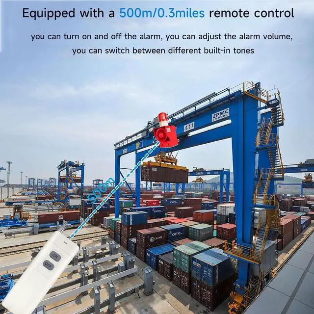 Remote controlThe alarm is equipped with a remote control. After wiring, you can turn OFF/ON the alarm freely by the remote. The remote range: 500m(no wall). Notes: the remote controller is powered by 9V battery(not included, need to purchase separately) and does not contain button or coin battery