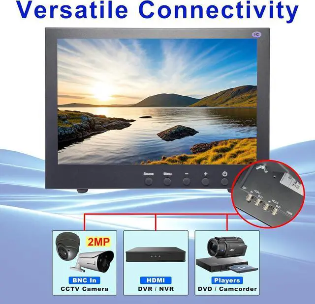 1. 10.1" HD 2MP/1920x1080P over Coax LED Security Monitor. 1 HDMI & 2 Full HD BNC Video Inputs. BNC video-in port works directly with the HD security cameras without going through any DVR or converters. It will allow security cameras send clear video by using a single Coax cable to the HD monitor, and it can prevent fuzzy or unclear images between the camera, recorder, and monitor. And 2 BNC Video Outputs for Second Monitor. Comprehensive range of High Definition product line, including cameras, DVRs/NVRs, and HD monitors.